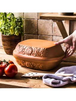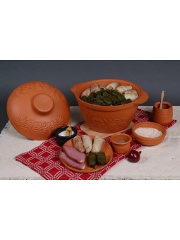 Oala de lut pentru sarmale Vitos cu o capacitate de 8 litri este un vas roman traditional, produs in Romania, ideal pentru prepararea sarmalelor si a altor mancaruri gatite lent, la cuptor. Realizat din argila arsa, fara alte materiale in compozitie, la o temperatura de 1000°C, intr-un cuptor electric automat.
