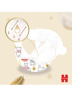 Tehnologia DermaComfort absoarbe rapid umezeala si o mentine departe de pielea copilului, oferindu-i o senzatie de uscat si confort pe durata intregii zile. Designul ergonomic si banda elastica moale permit o fixare delicata, fara a strange. In plus, indicatorul de umezeala te ajuta sa stii cand trebuie schimbat scutecul, pentru o ingrijire optima.