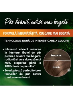 Obtine un saten deschis, luminos si natural cu vopseaua permanenta Garnier Olia 6.0. Formula unica, fara amoniac, cu 60% uleiuri, lasa parul vizibil mai sanatos si stralucitor. Acoperire 100% fire albe.
