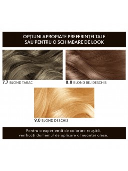 Nuanta naturala si radianta: Blondul deschis 9.0 ofera o culoare echilibrata, fara subtonuri nedorite, rezultand un blond curat si sofisticat.